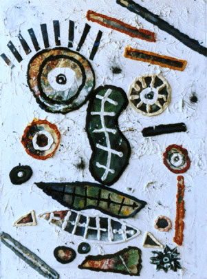 tecnica/technique: olio e collage ad olio su tela/oil and collage of oil on canvas